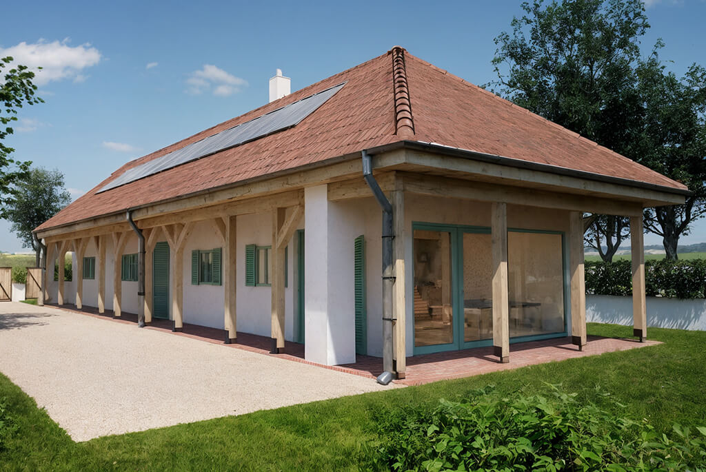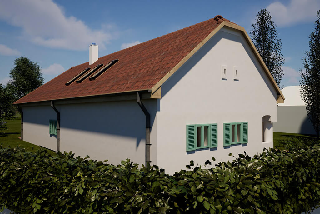A tervezési feladat egy közel 200 éves lakóépület újraélesztése volt új funkcióval megtöltve. A megrendelő az épületből vendégházat álmodott meg, úgy, hogy az épületet minél kevésbé bolygassuk meg. Amit lehet őrizzünk meg, így ennek szellemében a nyílásrendet nem változtattuk, a zsalugátereket felújítva, újra festve visszaépítettük, a tornác oszloprendje is magmaradt. Új tetőszerkezetet kapott az épület, de a meglévővel megegyezően, ahogy a héjazat is ugyanaz maradt. Az épület végében lévő romos állapotot újra építettük, és mivel ez egy új része az épületnek, egy modernebb megjelenést kapott.