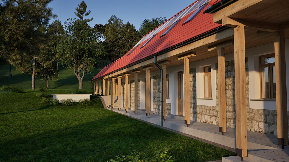 Erdőbénye szívében egy földszintes egytraktusos lakóépületet kellett áttervezni az új tulajdonosok igényére. Az épület cca. 100 éves, fafödémes és kőből épült. A megrendelőkkel közösen cél volt, hogy az épületből amit lehet mentsünk meg és mutassunk meg. A felújítás során a tetőtér beépítésre került és új helységek is megjelentek, mint: szabadidős szoba, egy fedett terasz. Beterveztünk hőszivattyút, napelemet, így az épület részben önfenntartó is lett. Az udvarba pedig egy kültéri medence is került. A végeredmény Tokaj-Hegyalja világörökségi borvidékhez méltó, modern és kényelmes.